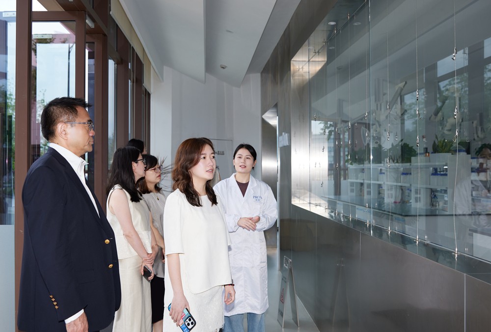 恩和生物联合创始人兼CEO崔好博士(右二)一行参观珀莱雅杭州龙坞研发中心