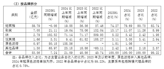 主品牌营收下滑直接影响到公司的护肤类别营收。上半年公司护肤类(含洁肤)的营收为41.99亿元,同比增长0.2%;而2021年至2024年,同期增速分别为22.70%、38.56%、37.85%和19.31%。