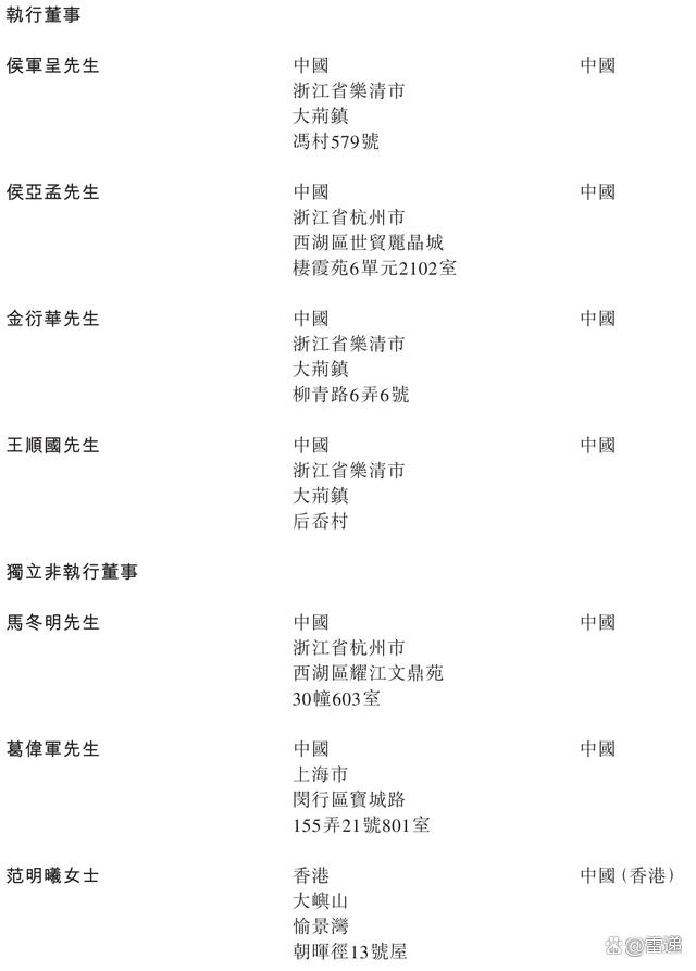 珀莱雅执行董事分别为侯军呈、侯亚孟、金衍华、王顺国;独立非执行董事分别为马冬明、葛伟军、范明曦女士。