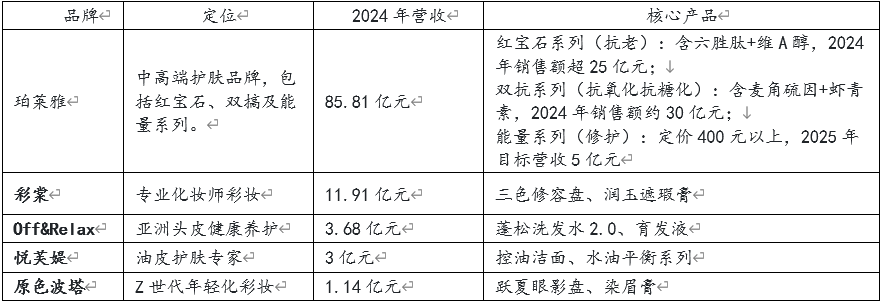 珀莱雅 主品牌通过“早C晚A”护肤理念成功抢占用户心智。红宝石系列贡献主品牌营收的65%。而主品牌全年85.81亿元的营收占公司总营收79.69%。这意味着,大单品策略支撑了公司整体营收的半壁江山。