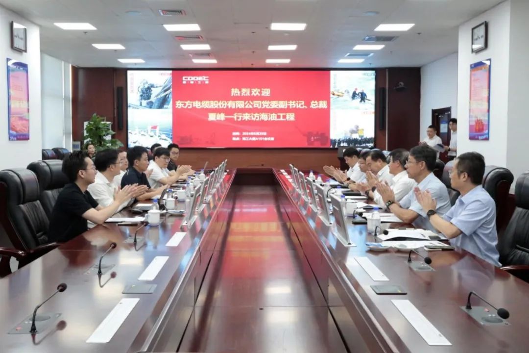 8月29日,东方电缆股份有限公司党委副书记、总裁夏峰一行到访海油工程,公司董事长、党委书记王章领会见来访人员。规划发展部、市场运营部、设计院、特种设备分公司、采办共享中心相关负责人参加会议。