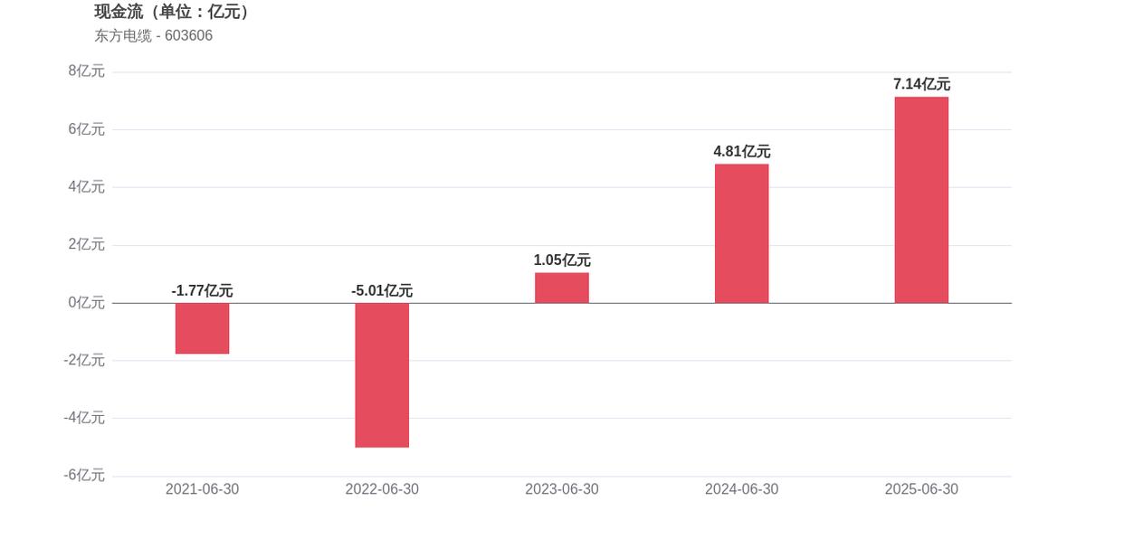 在经营稳健性方面,东方电缆面临存货周转效率下降的压力,存货周转天数增至122.99天,较上年同期增长8.49%,显示出库存管理承压。经营活动产生的现金流净额为7.14亿元,同比增长48.44%,现金流状况有所改善。此外,2025年上半年的资产负债率为48.72%,同比增长9.99个百分点,负债水平明显上升。
