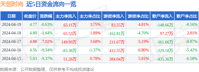 4月19日的资金流向数据方面,主力资金净流入65.11万元,占总成交额3.75%,游资资金净流入83.55万元,占总成交额4.81%,散户资金净流出148.66万元,占总成交额8.56%。