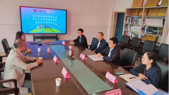 近日,长江大学动物科学学院与禾丰股份在动科院会议室举行校企合作签约仪式。出席此次签约仪式的有长江大学动物科学学院党委书记熊新山,常务副院长、动物医学系教授高学军,党委副书记苏晓云、辅导员老师王海洋,以及禾丰股份代表荆州禾丰销售总经理夏登卫、关内区综合项目部经理徐培珊等。
