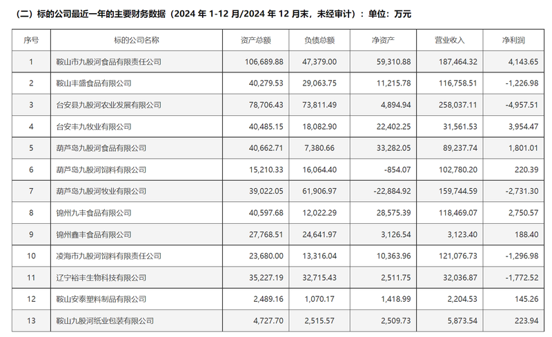 禾丰股份拟以自有及自筹(如需)资金收购金天明、马力、金鑫(简称“交易对手方”)持有的鞍山市九股河食品有限责任公司、鞍山丰盛食品有限公司、台安县九股河农业发展有限公司、台安丰九牧业有限公司、葫芦岛九股河食品有限公司、葫芦岛九股河饲料有限公司、葫芦岛九股河牧业有限公司、锦州九丰食品有限公司、锦州鑫丰食品有限公司、凌海市九股河饲料有限责任公司、辽宁裕丰生物科技有限公司、鞍山安泰塑料制品有限公司、鞍山九股河纸业包装有限公司13家公司(简称“标的公司”)部分股权(简称“交易标的”),本次交易的基础对价合计为35398.30万元,并根据2025至2029年度标的公司的盈利情况设置了交易对价调整机制。