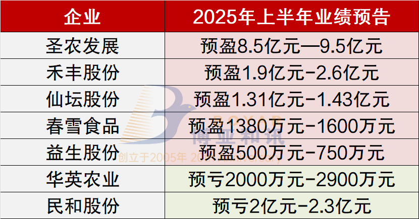 两极分化!丨圣农发展预盈冲9.5亿元,禾丰股份冲2.6亿元,民和股份预亏超2亿元