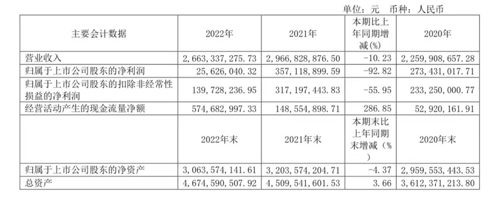 根据公告,公司实现营业收入26.63亿元,同比减少10.23%;归属于上市公司股东的净利润2562.6万元,同比减少92.82%。