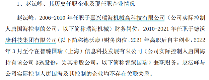 其次,回复函显示,赵沄峰过往的工作履历主要集中在财务岗位,未提及其具有智能床领域的相关从业经验。记者了解到,在参与设立上海舒福德不到一年后,赵沄峰便在2024年6月将所持全部股权以1500万元价格转让给上海撬心,原因包括上海舒福德经营业绩未达预期,赵沄峰面临还款压力,且其并未实际参与上海舒福德的经营管理,未能为公司业务发展提供实质性支持。