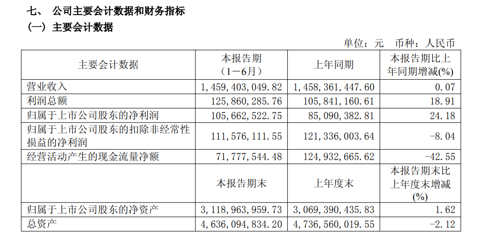 2025上半年,麒盛科技营业收入14.59亿元,同比增长0.07%;归属于上市公司股东的净利润1.06亿元,同比增长24.18%。