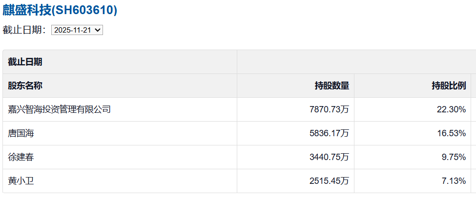 黄小卫在 麒盛科技 有持股,目前个人直接持有约为7.13%股份,居于第四大股东之位。