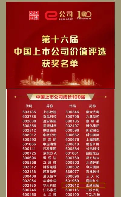 9月22日,由证券时报主办的“第十六届中国上市公司价值论坛”成功举办,索通发展荣获第十六届中国上市公司成长百强奖。