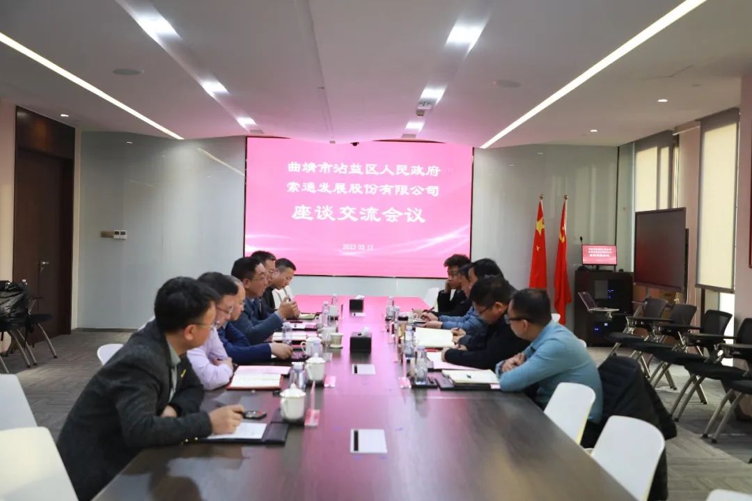 3月12日,曲靖市沾益区委副书记、区长刘清一行莅临索通发展总部调研并座谈。索通发展董事长郎光辉、总裁郝俊文参加会议。