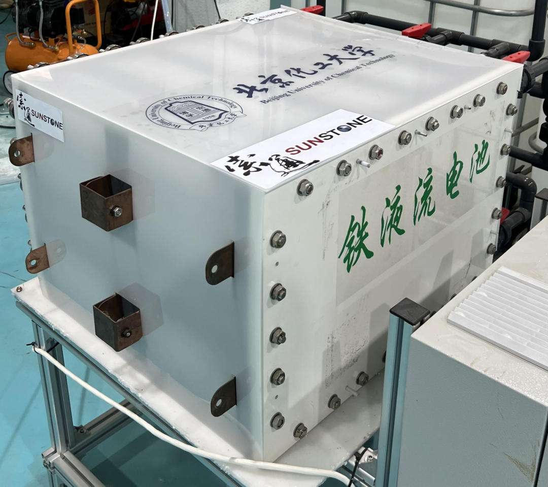 近日,由索通发展全资子公司北京索通新动能科技有限公司(以下简称“索通新动能科技”)与北京化工大学程元徽教授领衔的团队联合研发的5kW级铁系液流电池电堆组装完毕,并投入测试。