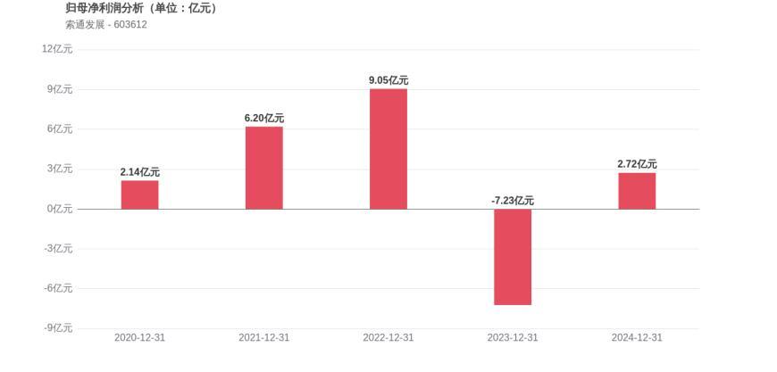 利润角度分析,2020年索通发展实现归母净利润2.14亿元,2024年2.72亿元。公司净利润在经历2021年、2022年的快速增长后,2023年出现大幅亏损,2024年重新扭亏为盈。