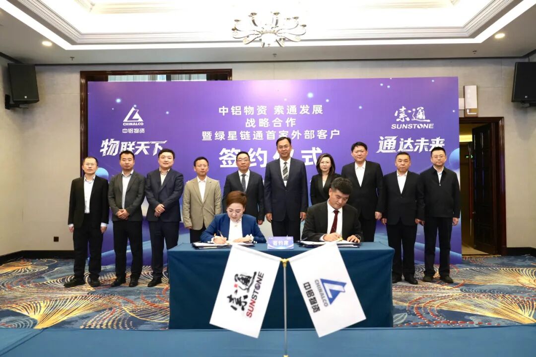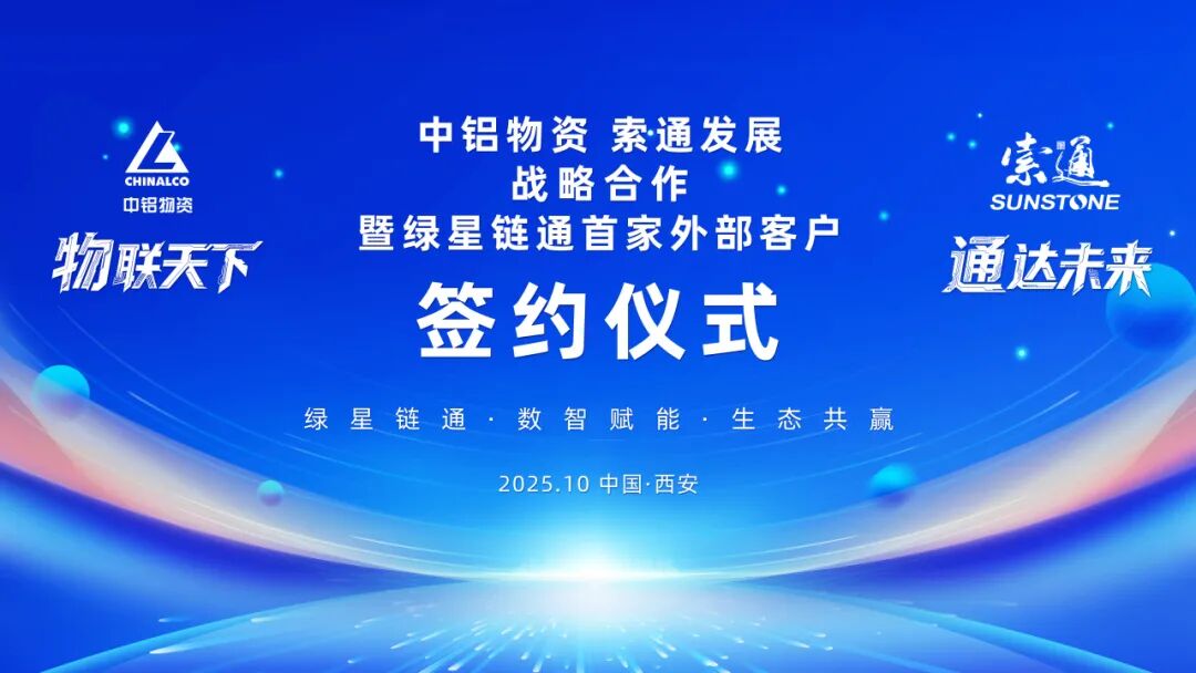 10月29日,索通发展股份有限公司(以下简称“索通发展”)与中国铝业股份有限公司(以下简称“中铝股份”)旗下中铝物资有限公司(以下简称“中铝物资”)在西安签署重要战略合作协议暨绿星链通首家外部客户签约,双方将基于“优势互补、资源共享、协同创新、互利共赢”的合作理念,共同拓展加强铝用碳素产业上下游产业链、供应链合作。
