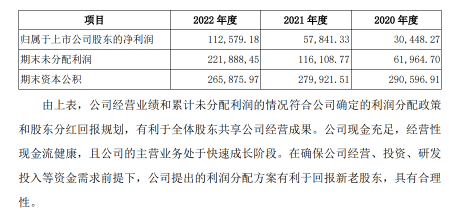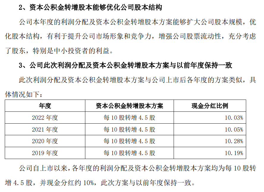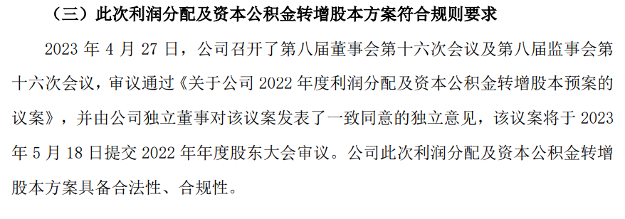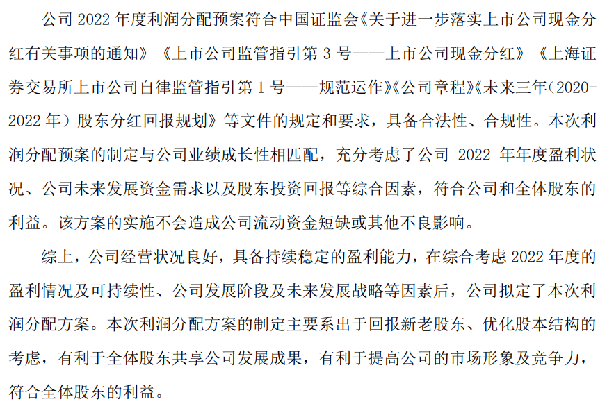 1、利润分配及资本公积金转增股本方案符合股东利益公司 2022 年度利润分配预案主要考虑了本年度公司经营业绩和累计未分配利润的情况,具体如下