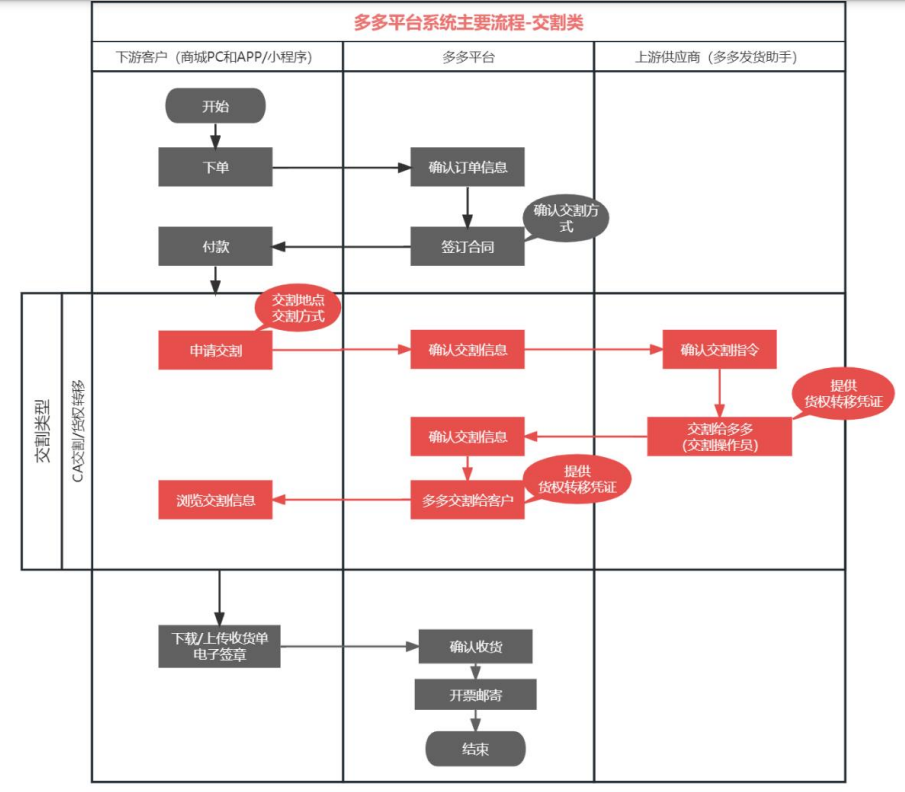 在多多物流配送的模式下,公司确认交易双方后,在交易过程中具体参与的交易流程主要如下: