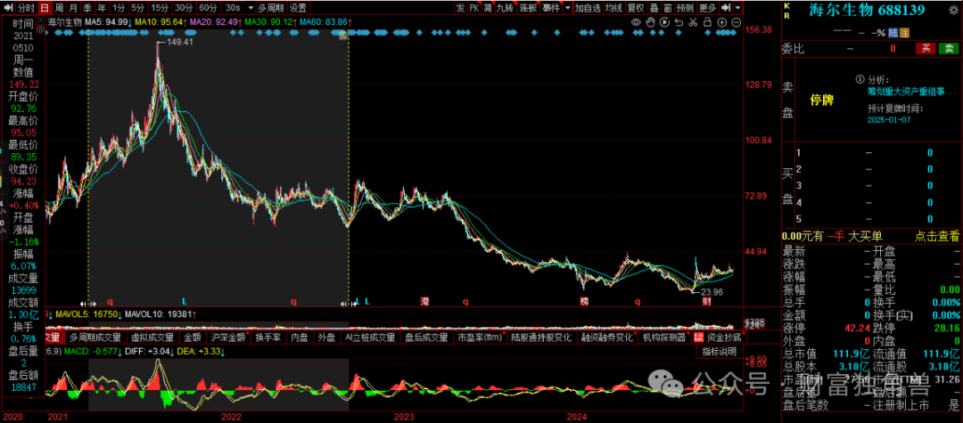 笔者发现,该基金在2021年2季度持有10.40万股的海尔生物,2021年2季度持有8.10万股,2021年3季度持有9.34万股。2022年1季度持有7.30万股,2022年2季度持有5.00万股,到了2022年3季度已经没有了此前购买的股票。然而,在该基金持有期间,2021年4月1日-2022年9月30日股票价格下跌了27%。