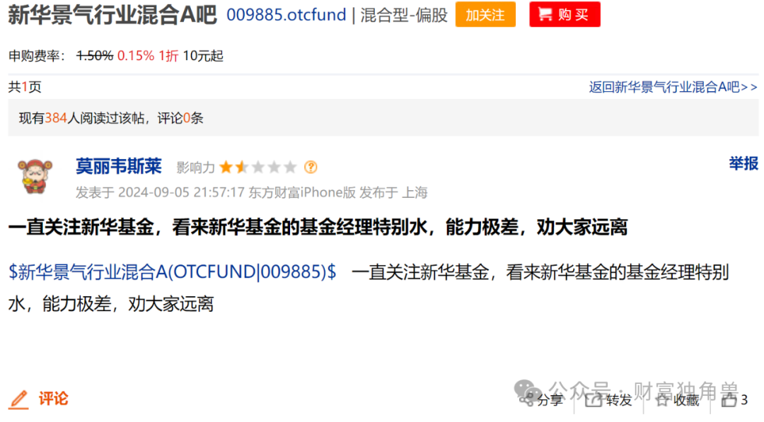 基金业绩下滑,基金规模下降。有基民抱怨,一直关注新华基金,看来新华基金的基金经理特别水,能力极差,劝大家远离。也有基民表示,自从换了基金经理表现特别差,市场跌它也跌,市场涨它还是跌,连续十来天天跌。笔者发现,该基金成立之初募集了12.75亿元。