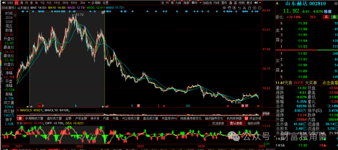 笔者还发现,该基金在2021年2季度持有9.69万股的山东赫达,2021年3季度持有13.70万股,2021年4季度持有11.80万股,2022年1季度持有13.69万股(2022年1季度股票价格一直在下跌,但该基金选择加仓。),到了2022年2季度已经没有了此前持有的股票。然而,在该基金持有期间,2021年4月1日-2022年6月30日股票价格下跌了2%。