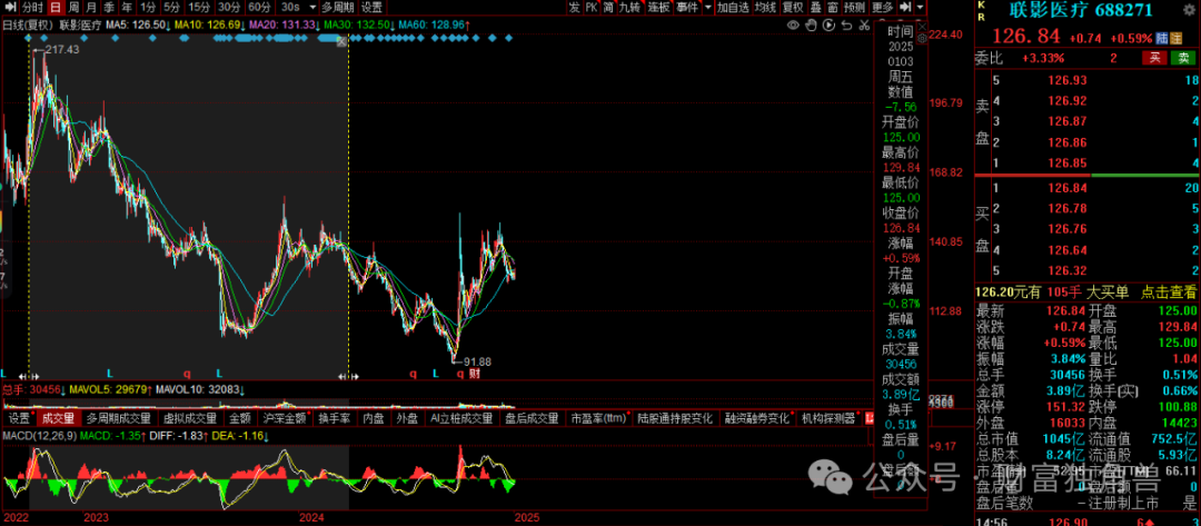 笔者发现,该基金在2022年4季度持有19.59万股的联影医疗,2023年1季度持有18.07万股,2023年2季度持有27.57万股,2023年3季度持有31.31万股,2023年4季度持有9.63万股,到了2024年1季度已经没有了此前购买的股票。然而,该基金在持有期间,2022年10月9日-2024年3月30日股票价格下跌了28%。