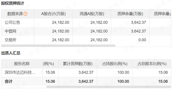 就在股权转让后不久,达迈科技就将其所持有的公司15.06%的股份全部质押。显然,达迈科技也不是什么有实力的主。