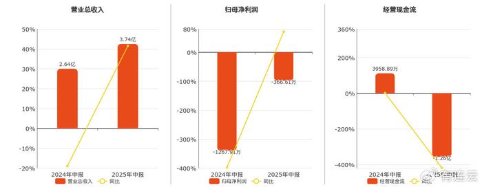 公司营业总收入为3.74亿元。归母净利润为-366.61万元。经营活动现金净流入为-1.26亿元,较去年同报告期经营活动现金净流入减少1.66亿元,同比较去年同期下降418.91%。