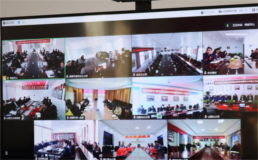 2024年1月29日上午,韩建河山在韩村河主会场和外阜各分会场召开大型视频会议,回顾公司2023年度各项工作,总结经验,提升水平;同时部署2024年度整体工作思路,号召公司全体员工统一思想、团结拼搏、扎实工作。进一步明确目标、细化措施,确保完成2024年各项经营指标。副总裁隗合双主持会议,副总裁付立强宣读年度工作报告,董事长、总裁田玉波发表了重要讲话。