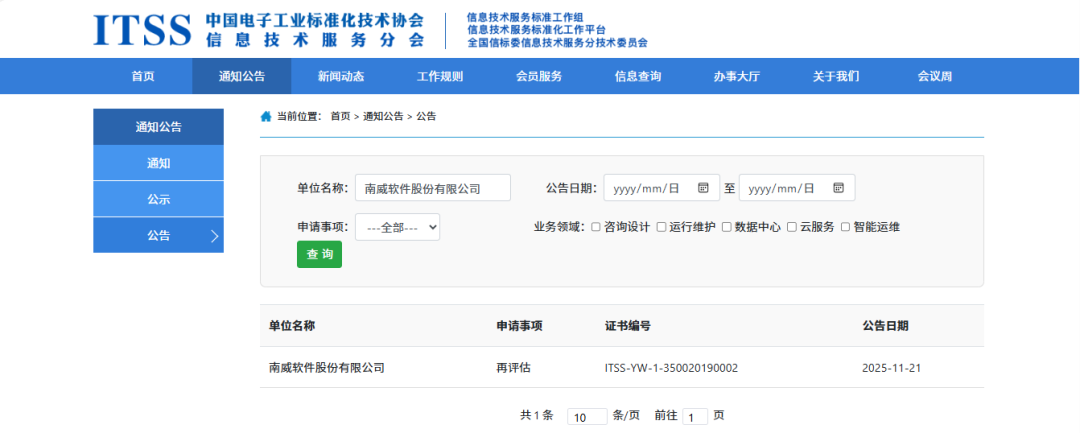 ITSS运维服务能力成熟度一级认证不仅是企业服务标准化、精细化运营的直接体现,更是参与国家级重大项目、高端市场竞争的核心资质保障。作为行业内资质最高最全的企业之一, 南威软件 集团已构建起涵盖ITSS运维服务能力成熟度一级、CCRC信息安全服务一级、软件服务商交付能力一级、CPMM软件项目管理能力一级、IT数智化人工智能服务能力评估一级、大模型服务能力评估一级的“顶级认证矩阵”,形成从软件研发到运维服务的全链条能力保障。