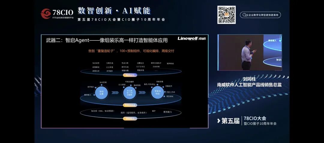为了支撑这一实战地图的落地,南威软件构建了“感、知、行”一体化的智能中枢。通过智启MaaS统一模型评测与调用,解决企业的模型选型难题;利用智启知识库将企业沉淀的“数据资料”精炼为读懂业务的“数据资产”;最后通过可像组装乐高一样快速开发的智启Agent,实现任务自动化与流程优化,从而打破场景落地的屏障。