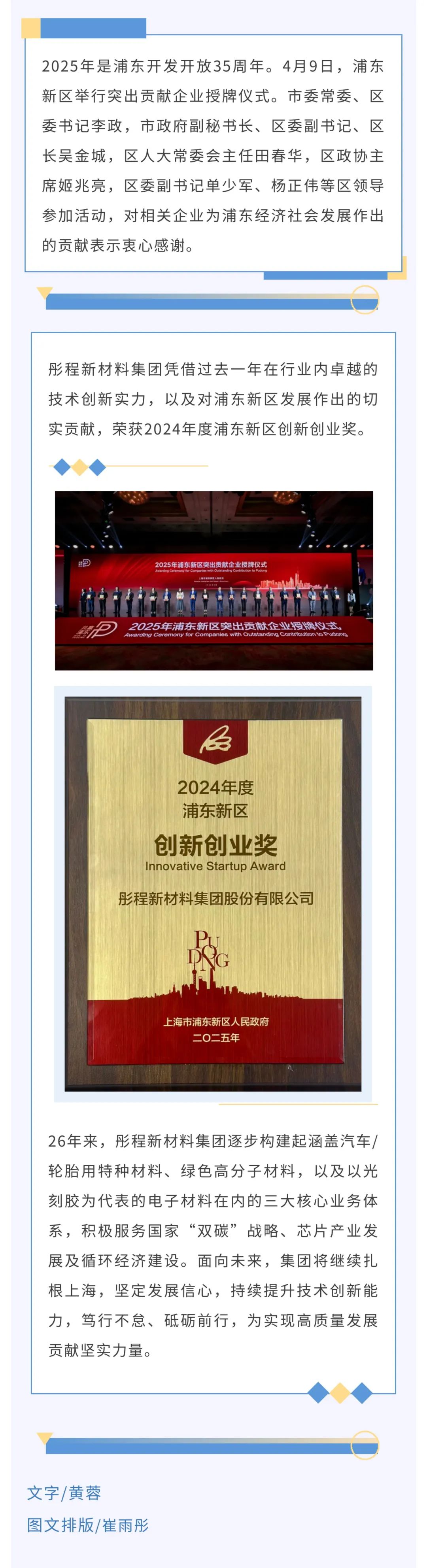 荣誉| 彤程新材料集团荣膺“浦东新区创新创业奖”