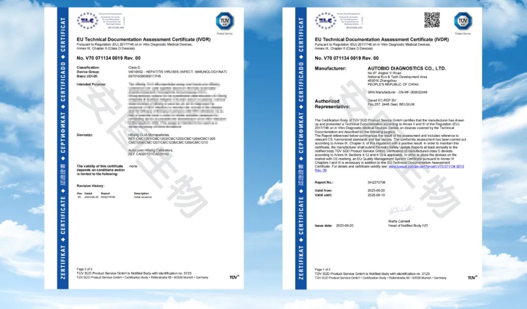 近日,安图生物乙型肝炎病毒表面抗原(HBsAg)检测试剂盒(磁微粒化学发光法)顺利通过欧洲临床考核,获得国内首张欧盟CE IVDR Class D认证证书。