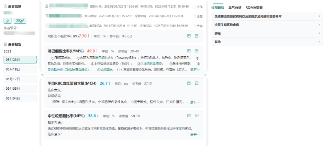 报告解读功能能够自动生成检验结果的解读,提供新增检验项目推荐以及专业的诊疗建议,为临床决策提供支持。