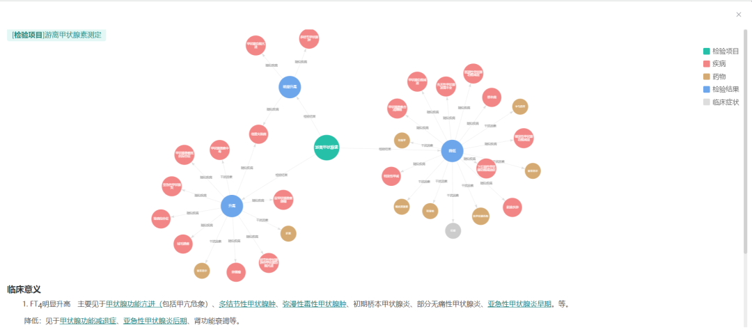 知识图谱以可视化的方式呈现检验指标与疾病之间的关联,方便检验医师分析检验结果及相关疾病,为临床诊断提供依据。