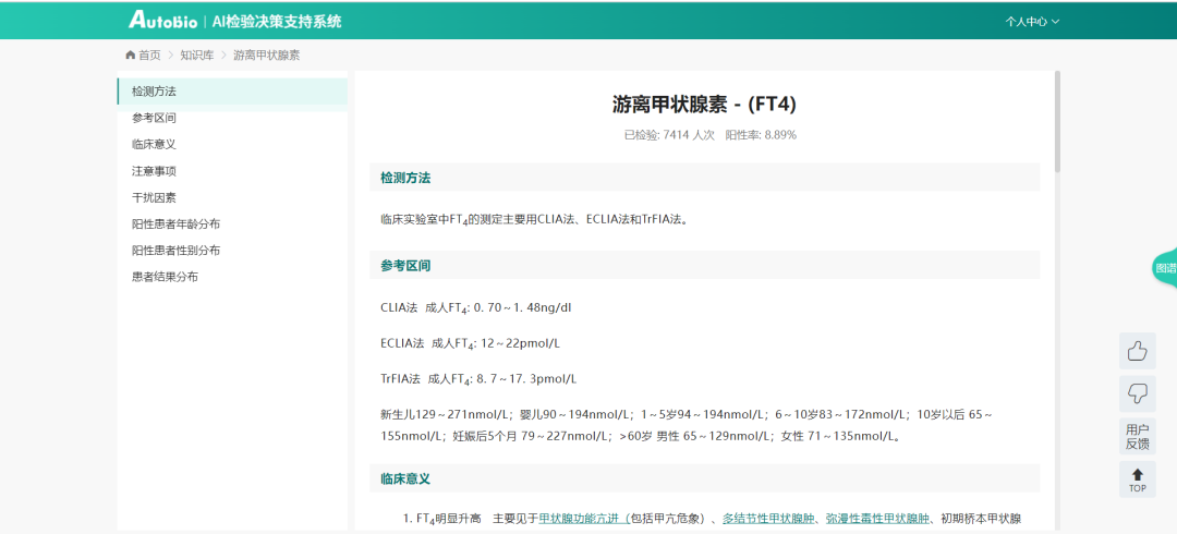 检验知识库包含海量的检验知识信息,如临床意义、注意事项、干扰因素等,能够帮助实验室工作人员随时查询、快速了解检验项目。