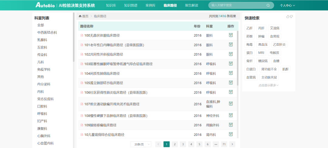 临床路径查询为临床提供了各类疾病的临床路径,有章可循,方便查找学习。