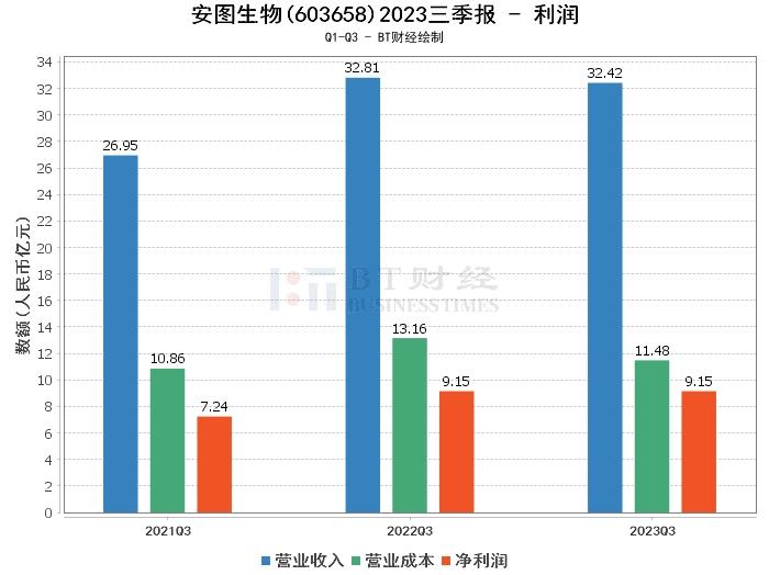 在利润方面,安图生物的营业收入为32.42亿元,略低于上年同期的32.81亿元。营业利润为10.06亿元,也略低于上年同期的10.25亿元。营业成本为11.48亿元,较上年同期的13.16亿元有所下降。净利润为9.15亿元,与上年同期持平。毛利率为64.59%,较上年同期的59.9%有所提高,净利率为28.23%,略高于上年同期的27.9%。这些数据表明,尽管营业收入和营业利润略有下滑,但公司的盈利能力仍然较强。