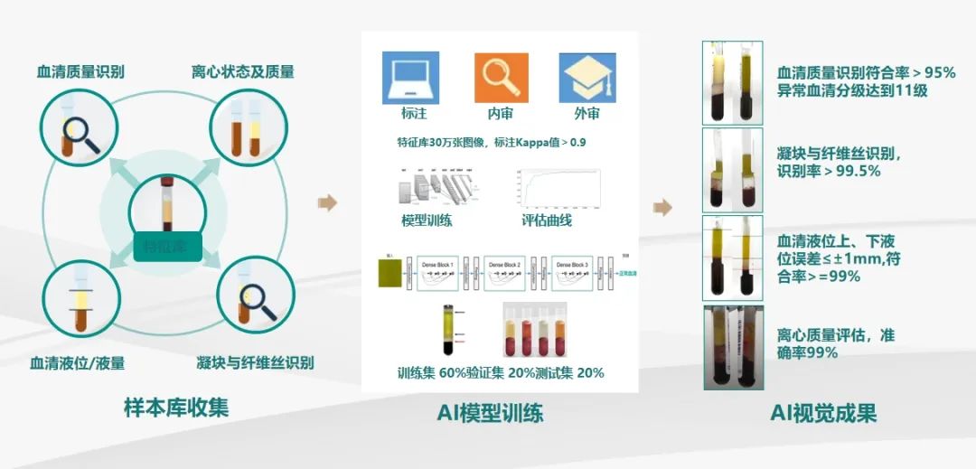 通过四年的不懈开发与积累,携手数十家医院开展课题合作,构建了强大的数据样本库:截至2024年底,样本库包含超过7万个血凝块与纤维丝分割样本,50万个血清质量样本,以及2万余个血清区域高精度样本,总样本数超100万例,涵盖所有主流采血管类型和临床常见血清情形,确保数据的多样性和全面性。