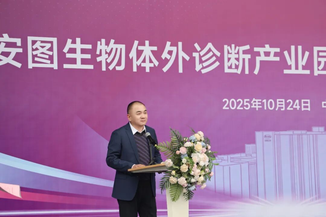 苗拥军董事长向所有关心支持安图生物发展的各级领导、合作伙伴及全体员工致以诚挚感谢。他提到,产业园三期项目的启用,是安图生物发展历程中的一个重要里程碑,它不仅凝结了安图生物多年来的技术积累与创新成果,更承载着我们服务全球医疗健康事业的远大理想。他表示,站在新的历史起点,安图生物心怀感恩,责任在肩,我们将依托这一现代化产业基地,携手合作伙伴,服务更广泛的客户群体,共同推动中国体外诊断产业的高质量发展,为人类健康事业贡献力量,助力国家医疗保障水平持续提升,为实现“健康中国”战略目标贡献安图生物的智慧与力量。