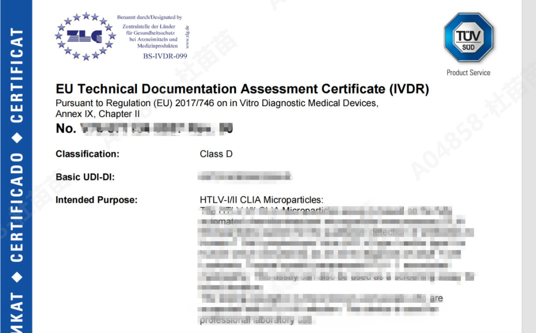 近日, 安图生物 人类T淋巴细胞白血病病毒抗体检测试剂盒(磁微粒化学发光法)顺利通过欧洲临床考核,获得欧盟公告机构——TüV南德意志集团签发的最高风险等级IVDR CE Class D证书。此次产品获证,标志着 安图生物 在试剂性能、临床验证及质量管理体系方面达到国际高标准要求,并填补了国产高端HTLV发光检测试剂在国际认证领域的空白。