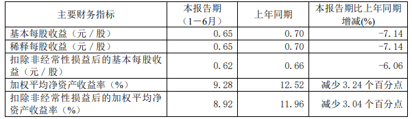 2023年上半年,璞泰来基本每股收益为0.65元/股,同比下降7.14%;扣除非经常性损益后的基本每股收益为0.62元/股,同比下降6.06%;加权平均净资产收益率为9.28%,比上年同期减少3.24个百分点;扣除非经常性损益后的加权平均净资产收益率为8.92%,比上年同期减少3.04个百分点。