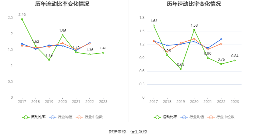 2023年,公司流动比率为1.41,速动比率为0.84。
