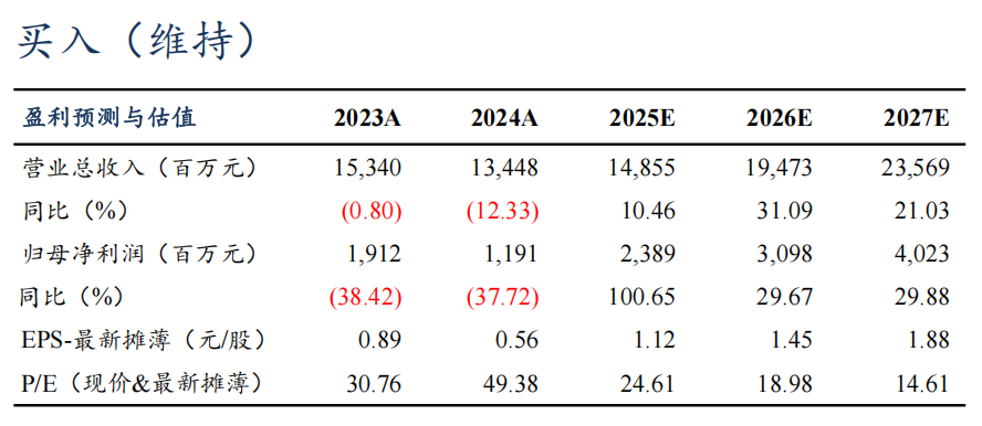 盈利预测与投资评级:我们预计公司25-27年归母净利23.9/31/40.2亿元,同比+101%/+30%/+30%(维持此前预测),对应PE为25x/19x/15x,考虑公司固态领域布局,给予26年30x PE,目标价43.5元,维持“买入”评级。