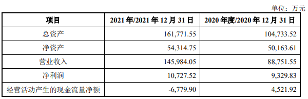 2020年、2021年,永裕家居营业收入分别为8.88亿元、14.60亿元,净利润分别为9329.83万元、1.07亿元,经营活动产生的现金流量净额分别为4521.92万元、-6779.90万元。