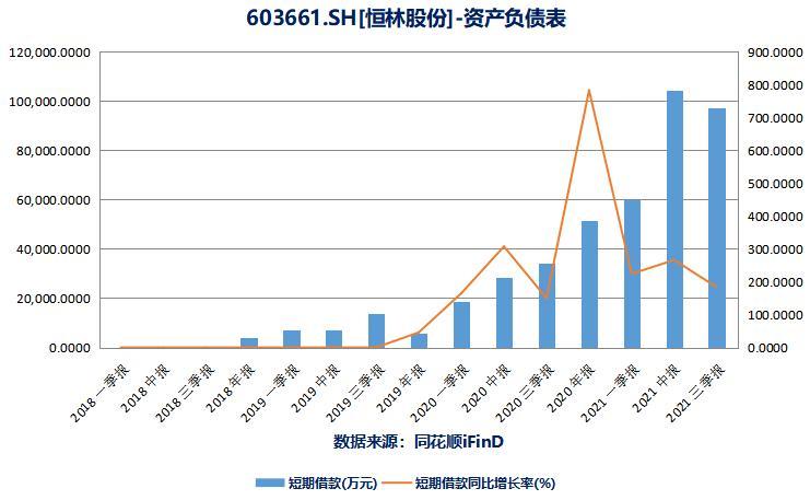 恒林股份2018年至2021年各报告期末短期借款余额情况