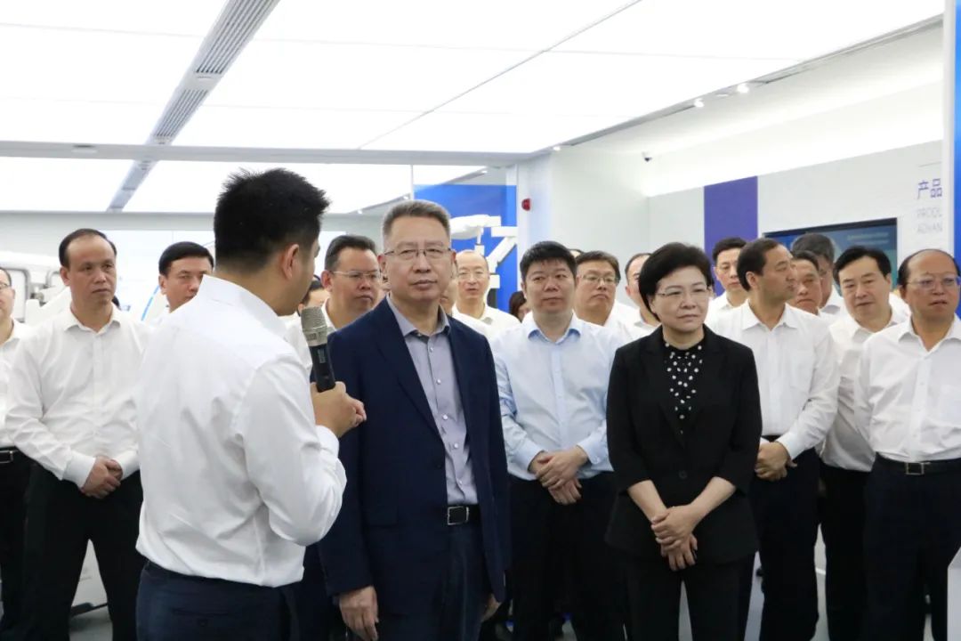 6月17日,湖北省武汉市党政代表团在南京考察。期间,湖北省委常委、武汉市委书记郭元强,江苏省委常委、南京市委书记韩立明带队莅临亿嘉和机器人产业园调研。