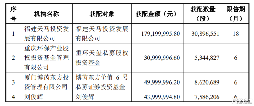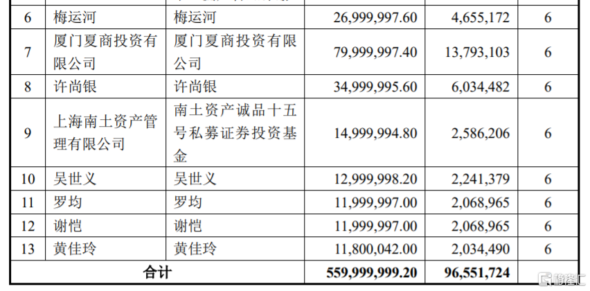 格隆汇8月2日丨天马科技(603668.SH)公布非公开发行股票发行情况,此次发行最终获配投资者共13家,发行价格为5.80元/股,此次发行股票数量为9655.17万股,募集资金总额约为5.60亿元。各发行对象获得配售的情况如下: