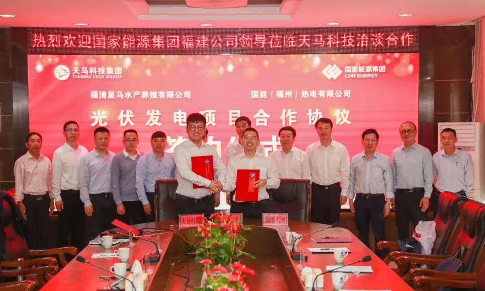 签约仪式上,天马科技集团副董事长、执行总裁陈加成先生作为集团代表,分别与国能(福州)热电有限公司党委书记、董事长郝云志签署全面合作协议,与国能(福州)热电有限公司党委副书记、总经理张春辉签署光伏发电项目合作合同。此次合作将以打造低碳智慧厂区及智慧绿色鳗鱼文化产业园为目的,在产业转型升级、综合能源供给、新兴产业发展等领域展开合作。合作以新能源开发为重点,推动“渔业+光伏”的产业跨界整合,实现上可发电下可养鱼的绿色清洁能源加绿色健康水产的双绿色模式,助力新能源产业创新示范区的建设。