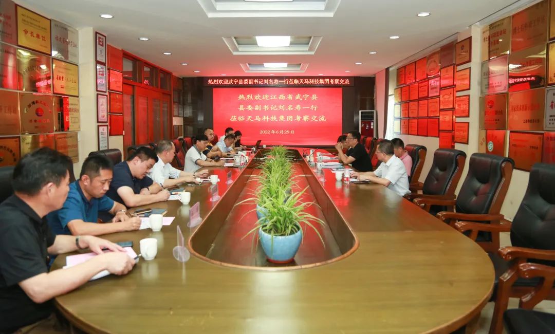 6月29日,江西省九江市武宁县委副书记刘名寿一行莅临天马科技集团考察调研,详细了解集团发展历程及特种水产业、畜牧业、食品业和一二三产业四大核心板块战略规划布局。集团董事长陈庆堂先生,集团高层领导邱金谋、张蕉霖等集团领导热情接待。