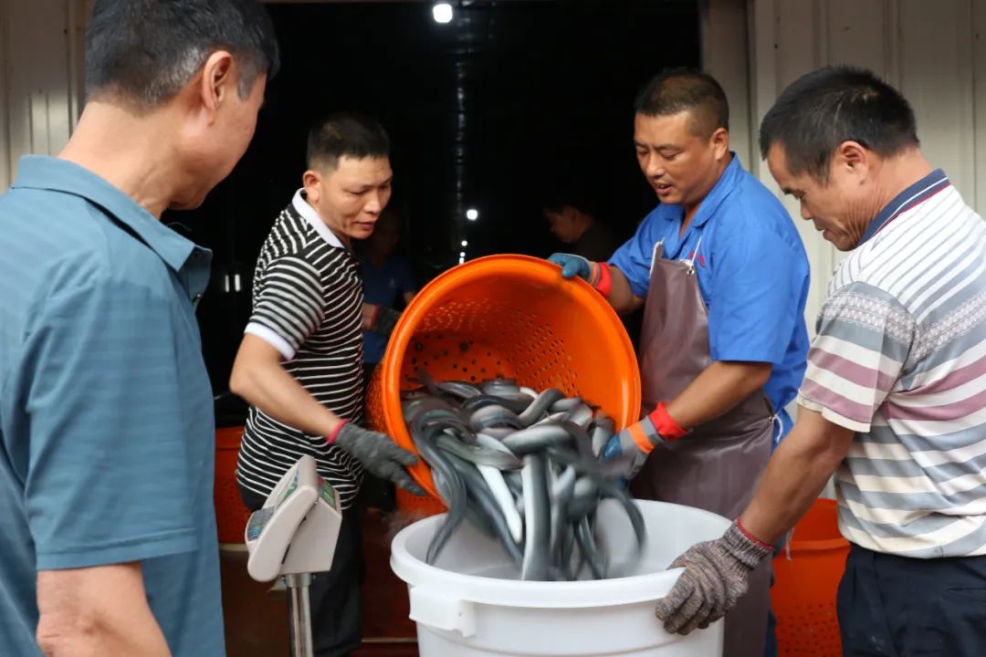 中东镇鳗鲡堂生态养殖基地在苗种投放、饲料投喂、水质管控、预防保健、鳗鱼选别和鳗鱼销售等各个环节进行规范化管理,进一步提高鳗鱼存活率,使鳗鱼全产业链实现养殖过程全封闭、养殖流程可追溯、养殖成本可控制、养殖效益可预期。